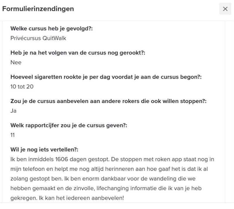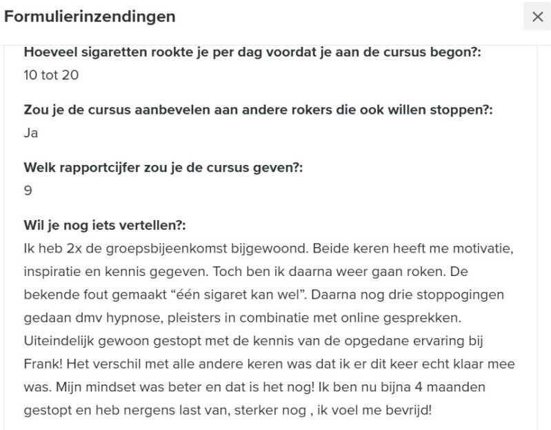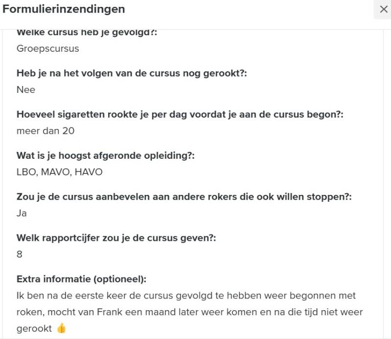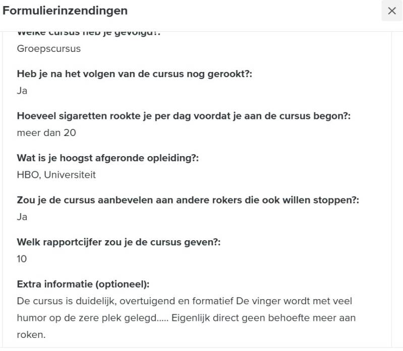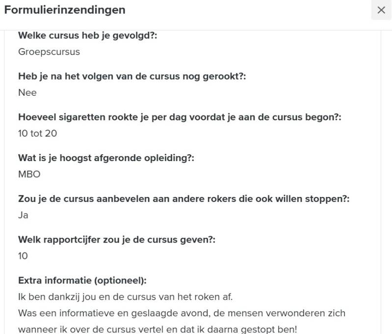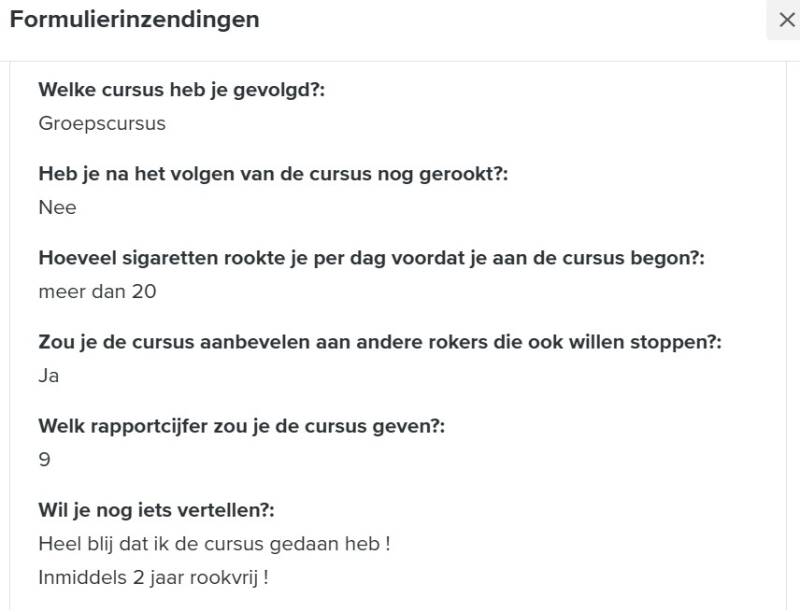 Een enquête in januari 2025 onder 500 deelnemers van de 'Ook Jij Kan Stoppen!' training laat zien dat 68% nog steeds rookvrij is en 98% de cursus aanbeveelt.